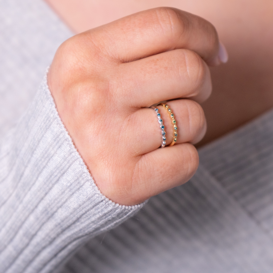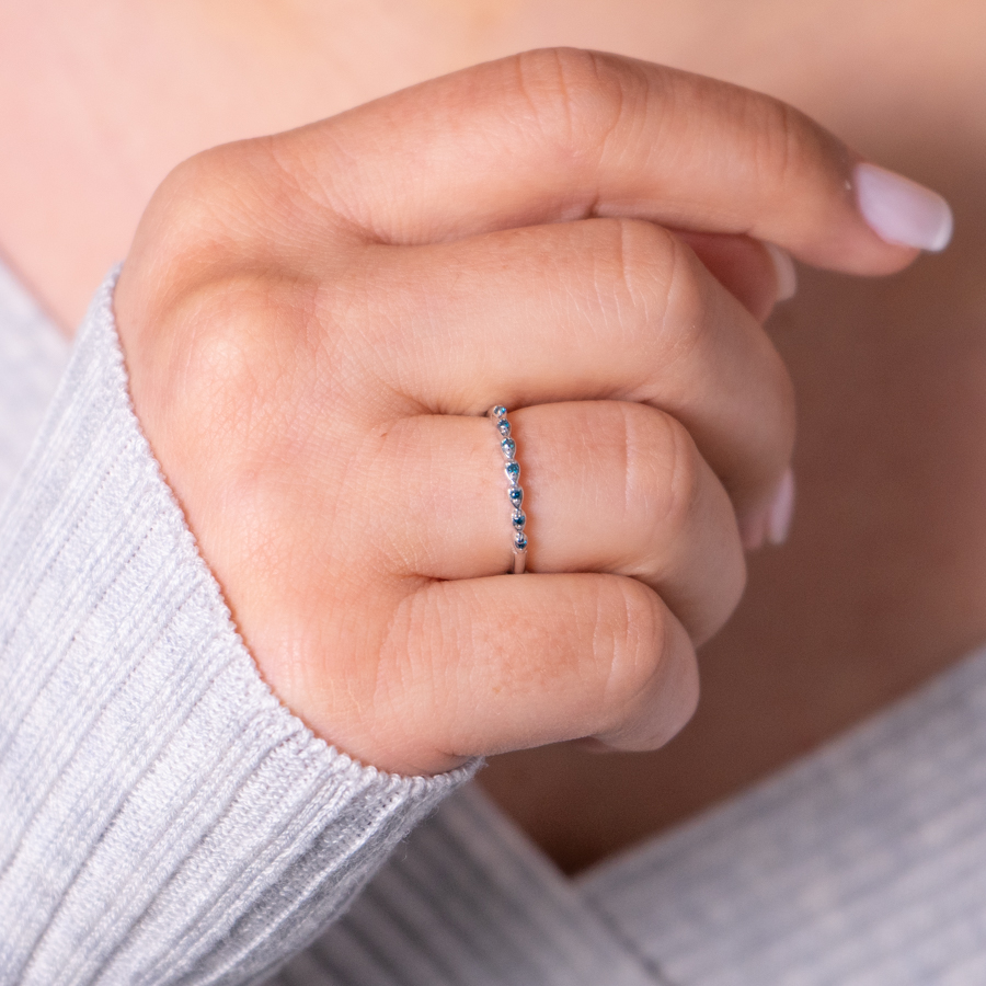 Δαχτυλίδι από λευκό χρυσό 18 καρατίων με μπλε διαμάντια 0.04ct τοποθετημένο στο καστόνι .