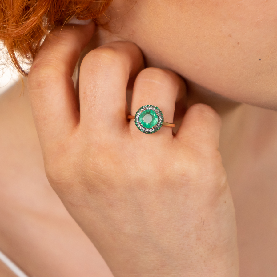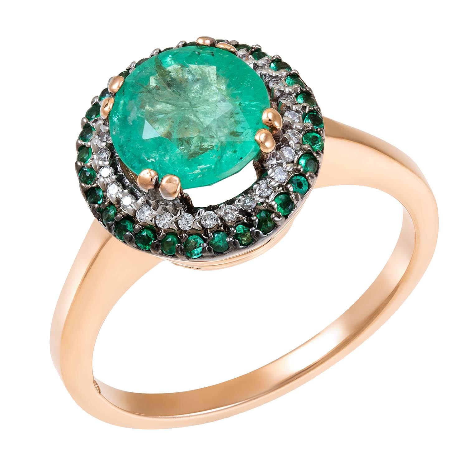 Δαχτυλίδι από κόκκινο χρυσό 18 καρατίων με σμαράγδι 1.72ct, σμαράγδια 0.14ct και λευκά διαμάντια 0.08ct συνολικά τοποθετημένα στο καστόνι .