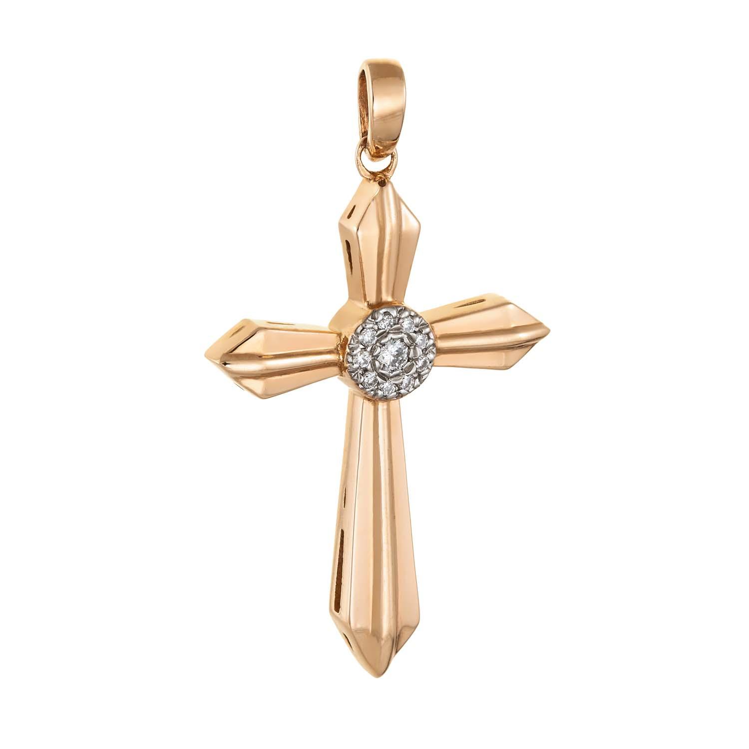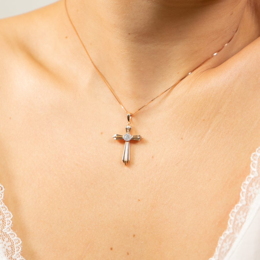 Σταυρός από κόκκινο χρυσό 18 καρατίων με λευκά διαμαντια κατά μήκος.