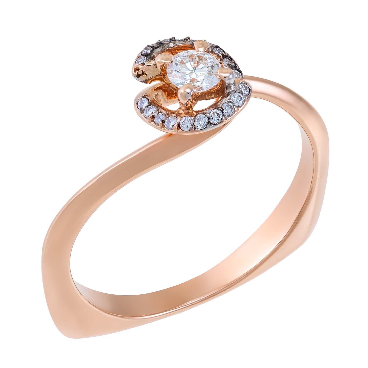 18ct red gold ring with a 0.15ct white diamond and 0.08ct diamonds fitted along the shank.