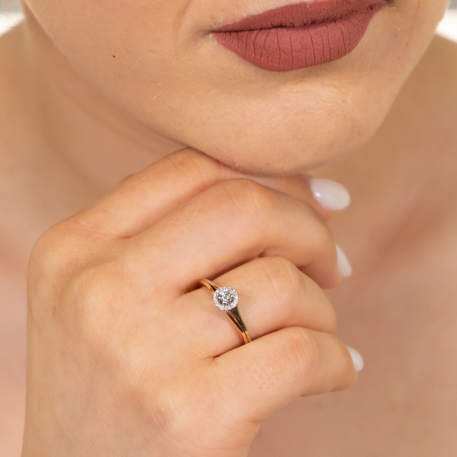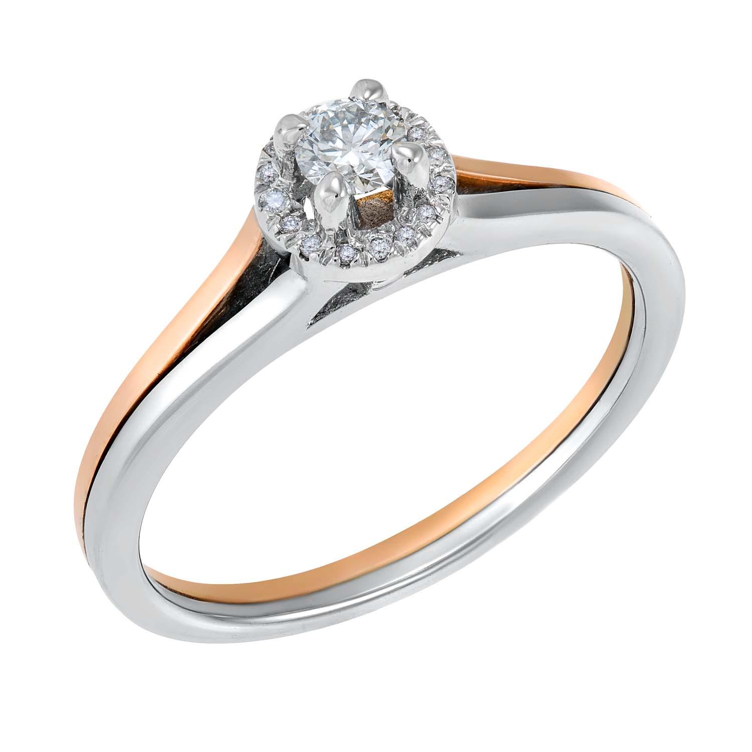 18ct white and red gold ring with a 0.14ct white diamond and 0.05ct diamonds fitted on the bezel.