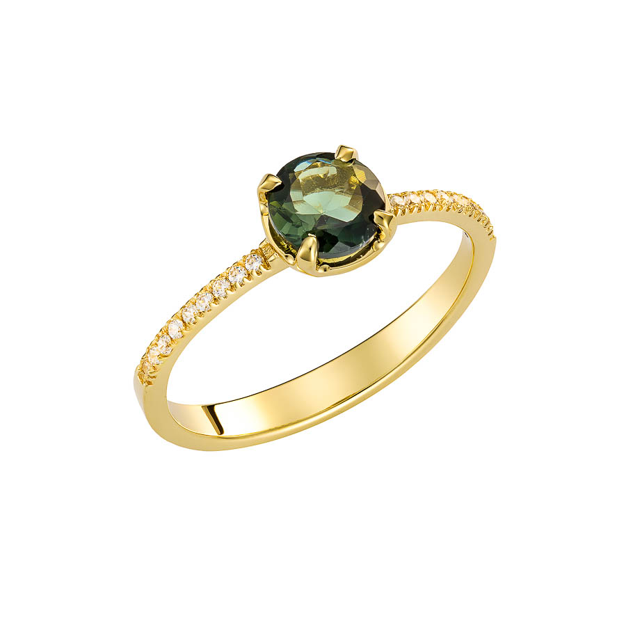 14ct yellow gold ring with tourmaline and white zircon fitted on the bezel .