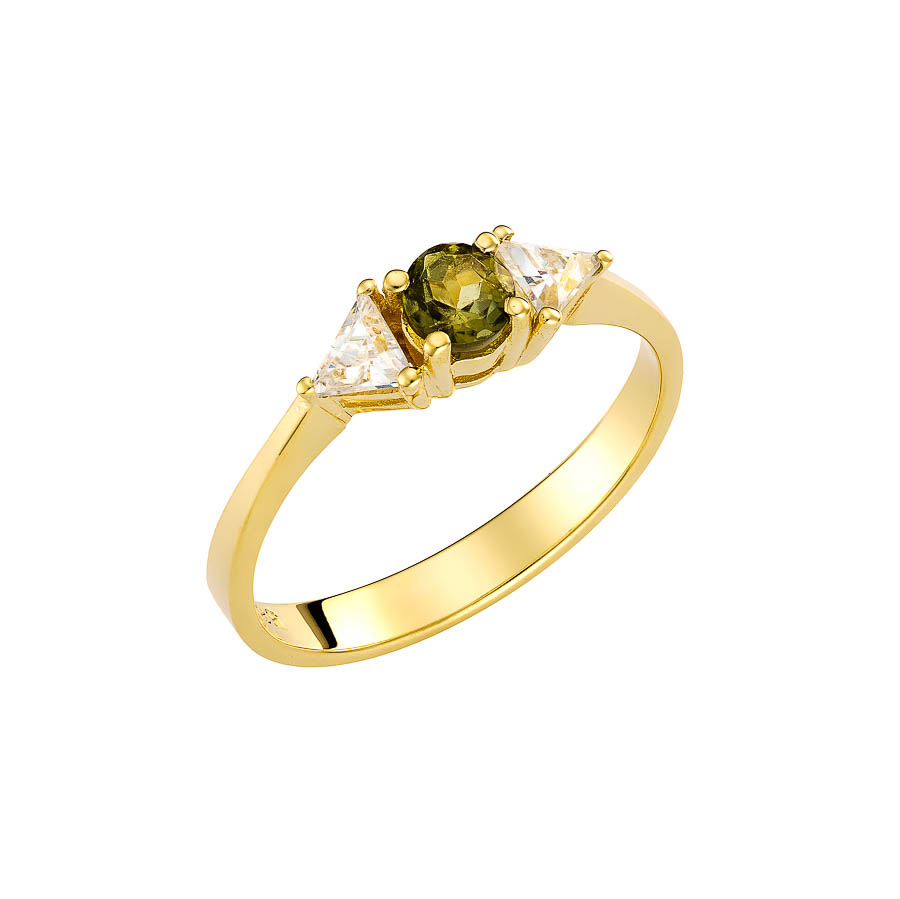 14ct yellow gold ring with tourmaline and white zircon fitted on the bezel .